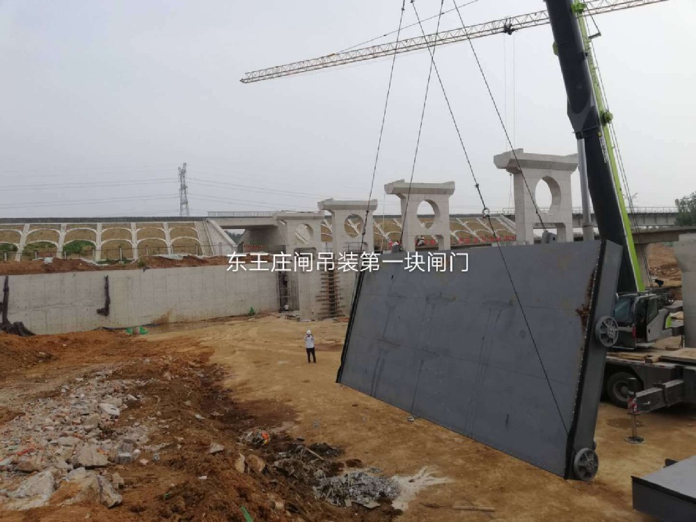 市中區(qū)東王莊閘除險加固工程順利完成閘門吊裝任務(wù)