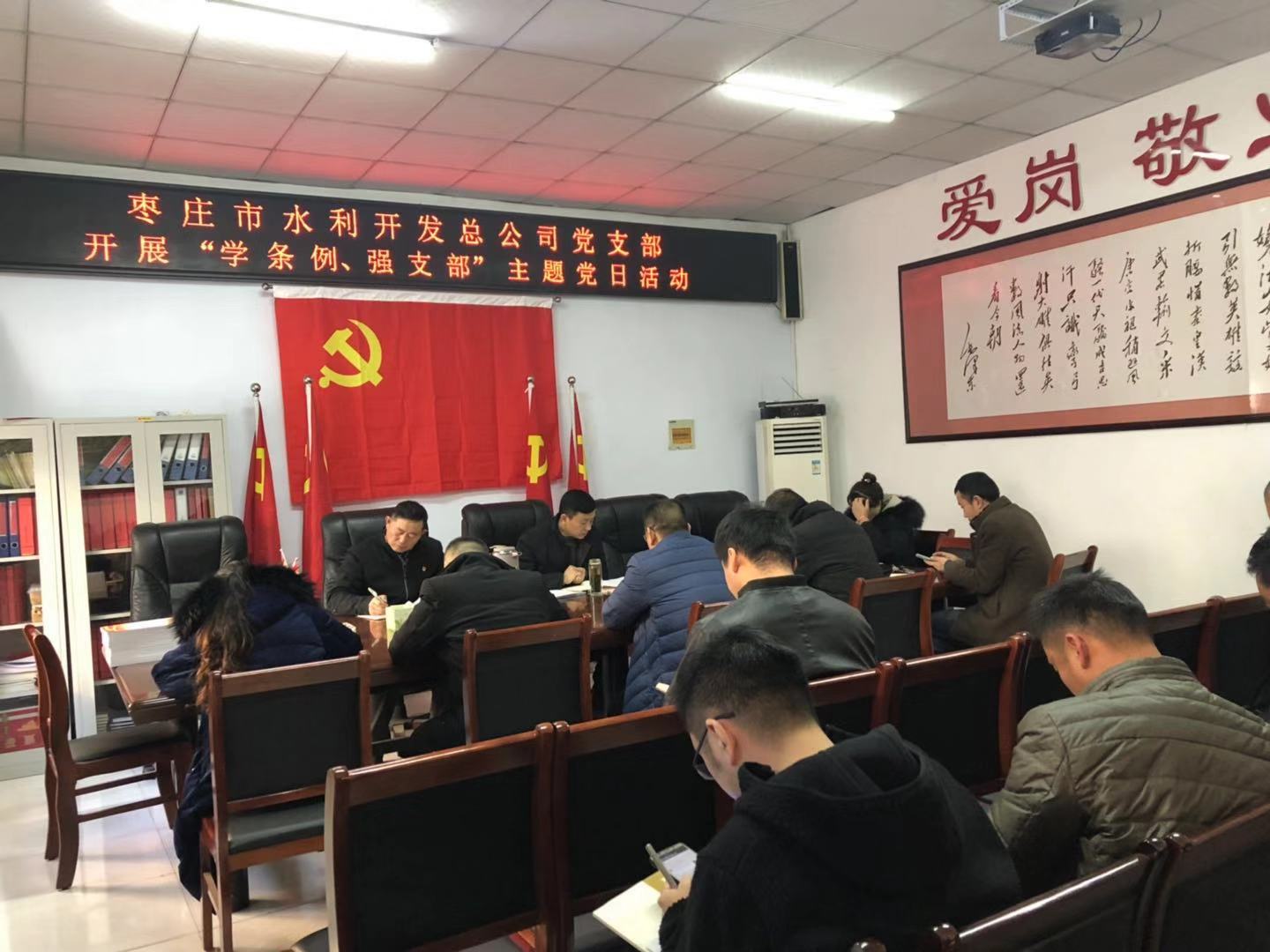 12月28日下午,棗莊市水利開發(fā)總公司開展“學(xué)條例、強(qiáng)支部”主題黨日活動(dòng),集中學(xué)習(xí)新修訂的《中國共產(chǎn)黨支部工作條例(試行)》。