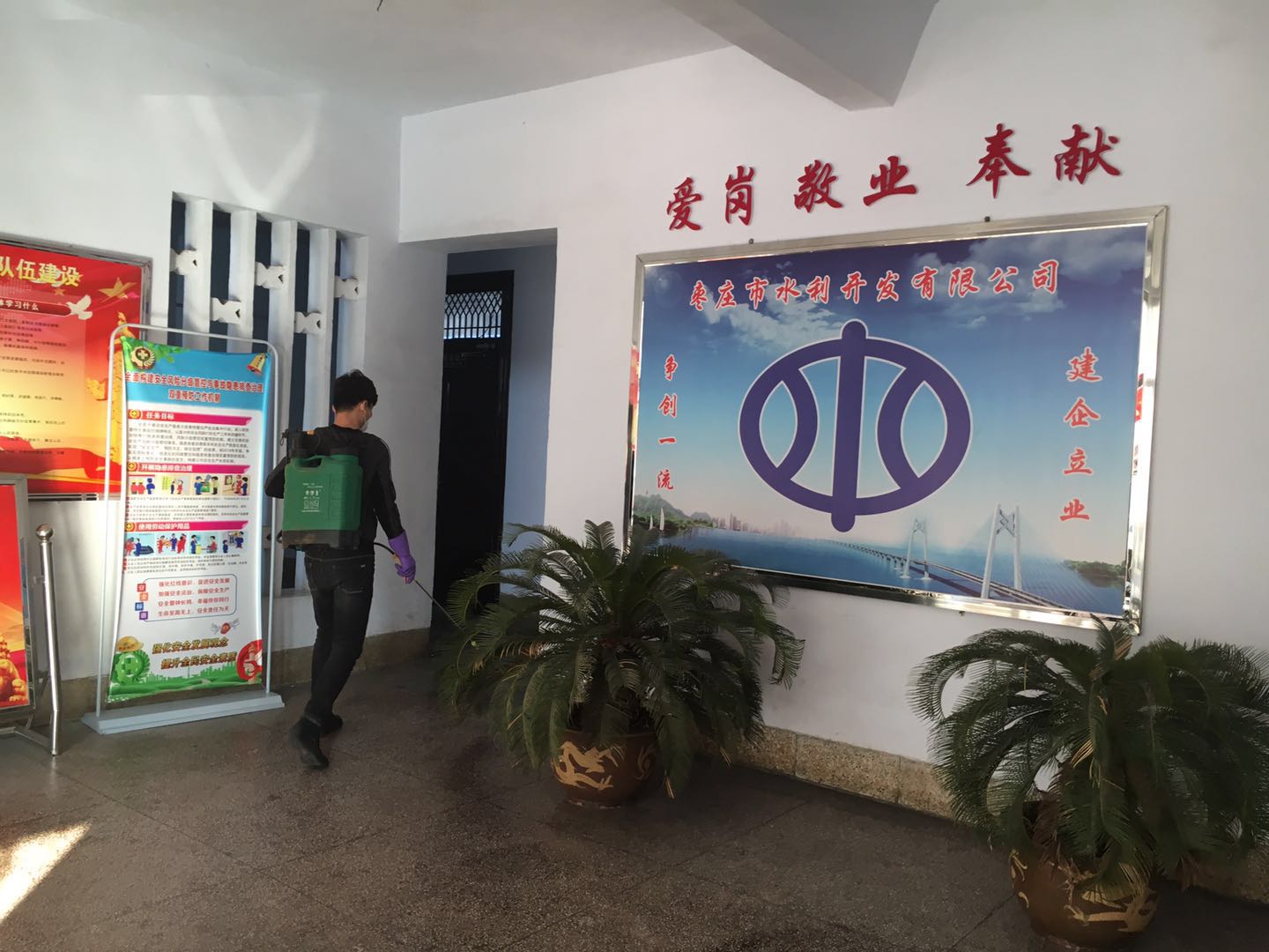 為進(jìn)一步做好新型冠狀病毒感染的肺炎疫情綜合防控,遏制疫情擴(kuò)散和蔓延,2020年2月10日上午,棗莊市水利開發(fā)有限公司切實(shí)做好復(fù)工階段疫情防控工作,由副總經(jīng)理鄭濟(jì)營、副總經(jīng)理連永等同志帶領(lǐng)相關(guān)人員進(jìn)行了復(fù)工后工作場所全方位衛(wèi)生消毒和檢查防疫工作。